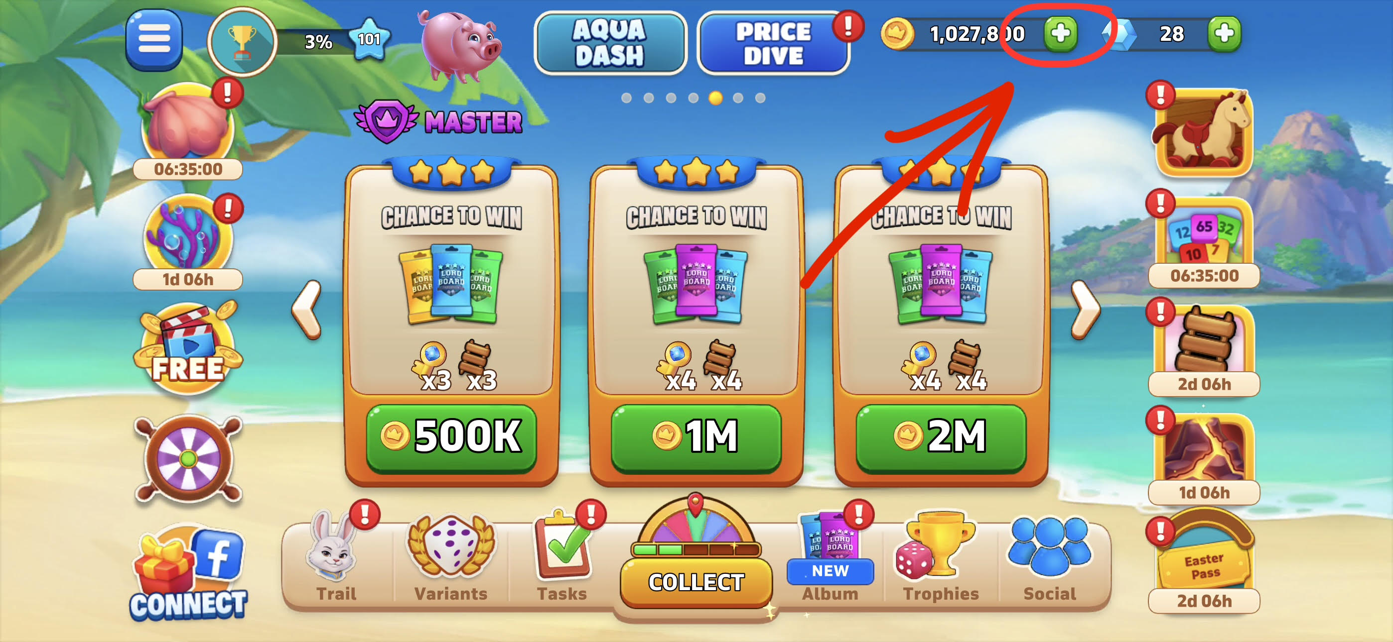 Click the green + button next to your coin balance in the main lobby →