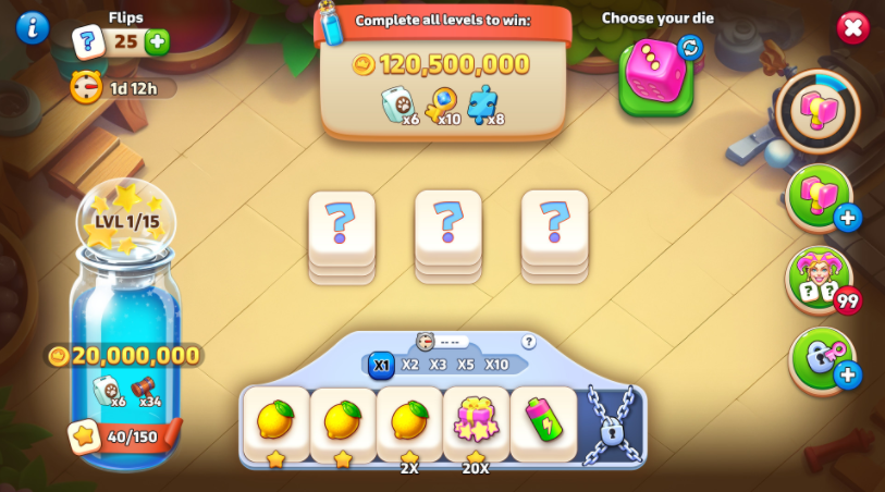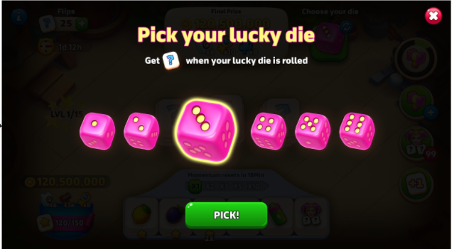 - When you roll your chosen number, it helps fill the bar and you can win Flips.